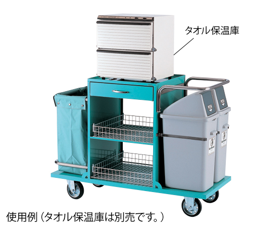 ●汚れ物の区別ができ、後の処理が容易です。●ポリダスターは横から押し込みフタでワンタッチ開閉でき清潔です。●<本体部>●▼材質:スチール(ハンマーネット)、ビニール帆布/ターポリン●▼天板サイズ:435×475mm●▼両面引出し内寸法:(幅)480×(奥行)500×(高さ)100mm●▼棚間隔:上段/307mm、下段/305mm●▼キャスター:φ150mm(自在車2個・固定車2個、ストッパー無し)●▼付属品:ワイヤーバスケット×2個・ビニール帆布×1枚●<ポリダスター部>●▼容量:35L (2個付き)●▼外寸法:(幅)265×(奥行)420×(高さ)700mm●▼材質:PP(ポリプロピレン)●▼※タオル保温庫は付属していません。●●★※木製の梱包(木枠・パレット等)を使用しています。