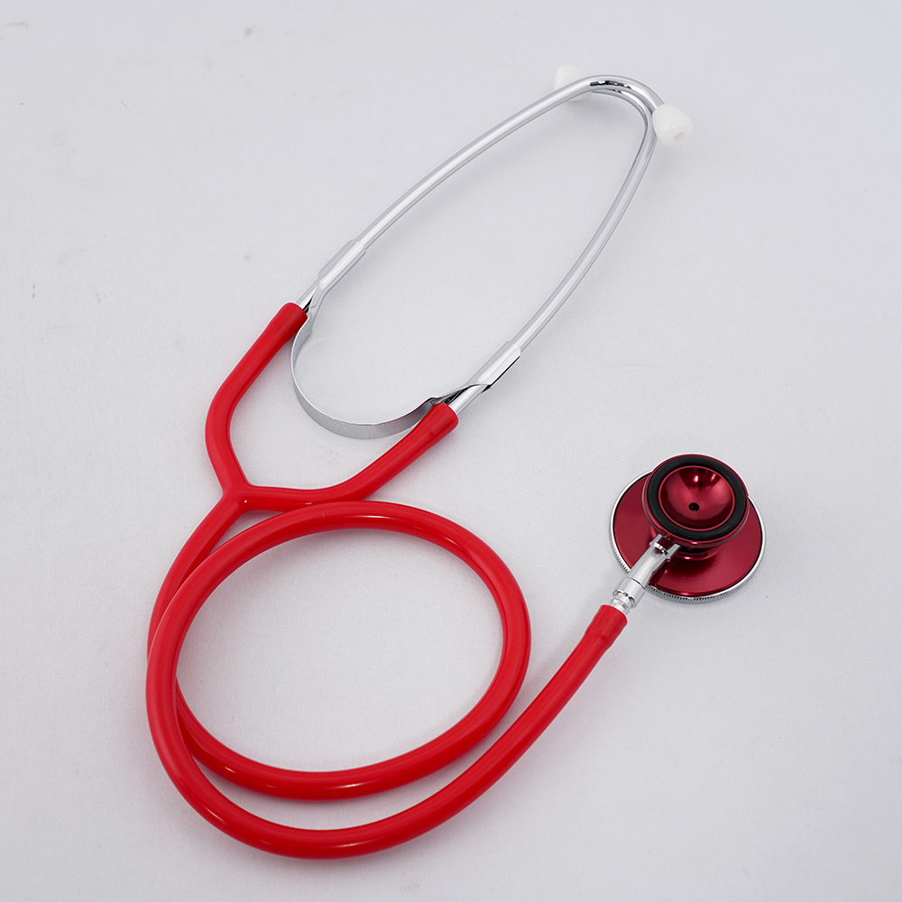 ●カラフルに、より使いやすく!●シングルタイプは、主に血圧測定用です。●ダブルタイプは、高音(呼吸音)および低音(心音)を聴くのに便利です。●振動板にはガラスエポキシが採用されており、音響特性に優れています。●材質:振動板/ガラスエポキシ、バイノーラル(耳管)/真鍮クロームメッキ、振動板止めリング・チェストピース/アルミニウム、Yチューブ/塩化ビニール●サイズ:全長/800mm、振動板/φ43mm、振動板止めリング/φ45×3mm、耳管/全長170mm、Yチューブ/590mm、チェストピースシングル/φ45×60×15mm、チェストピースダブル/φ45×70×23mm●重量(g):105●色:レッド●型番:No.120