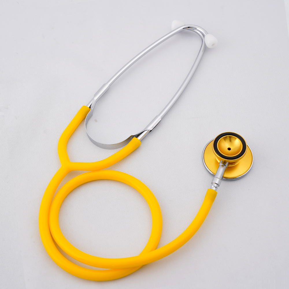 ●カラフルに、より使いやすく!●シングルタイプは、主に血圧測定用です。●ダブルタイプは、高音(呼吸音)および低音(心音)を聴くのに便利です。●振動板にはガラスエポキシが採用されており、音響特性に優れています。●材質:振動板/ガラスエポキシ、バイノーラル(耳管)/真鍮クロームメッキ、振動板止めリング・チェストピース/アルミニウム、Yチューブ/塩化ビニール●サイズ:全長/800mm、振動板/φ43mm、振動板止めリング/φ45×3mm、耳管/全長170mm、Yチューブ/590mm、チェストピースシングル/φ45×60×15mm、チェストピースダブル/φ45×70×23mm●重量(g):105●色:イエロー●型番:No.120