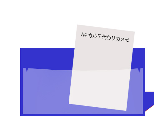 ●メモをはさみ、持出しカルテのかわりにラックに入れておけばカルテの所在を明示でき、カルテの紛失を防げます。●タイプ:A4●カラー:青●入数:1袋(10枚入)