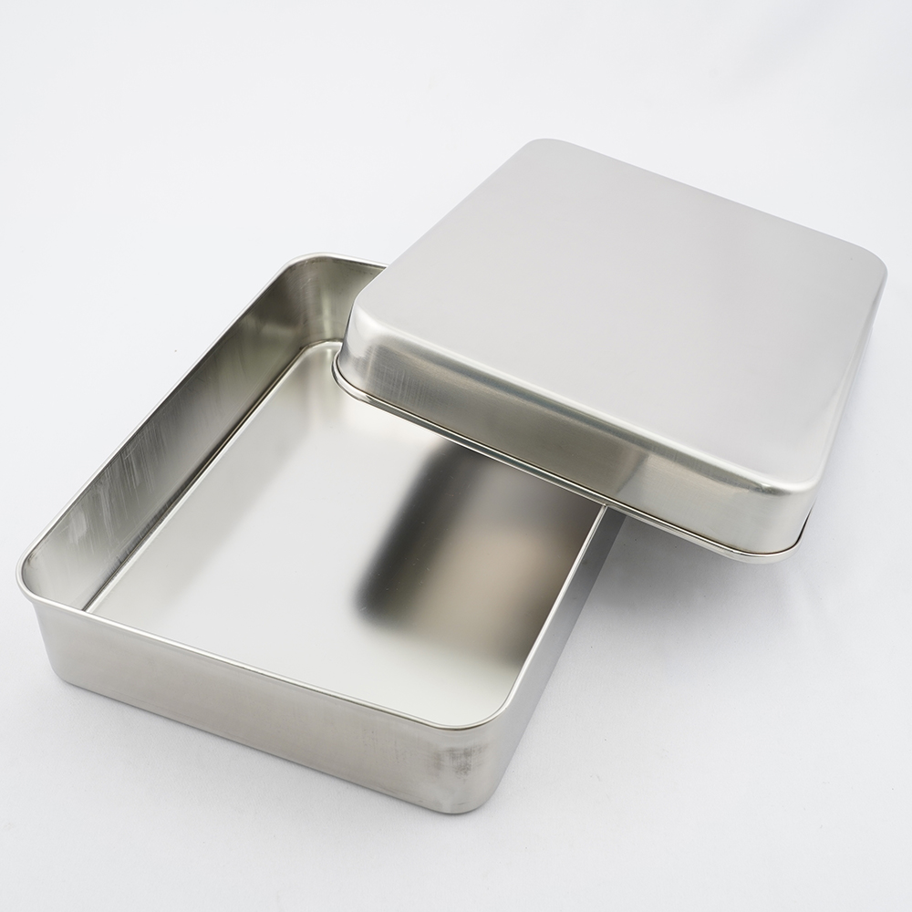 ●縁に丸巻き加工を施していますので、丈夫です。●光沢は照明の反射を抑えた鏡面仕上げです。●材質:ステンレス(SUS304)●本体外寸法(mm):270×210×60●本体内寸法(mm):265×205×58●フタ外寸法(mm):280×220×38●フタ内寸法(mm):275×215×35●型番:3号●厚み:0.6mm ●日本製●オートクレーブ:可