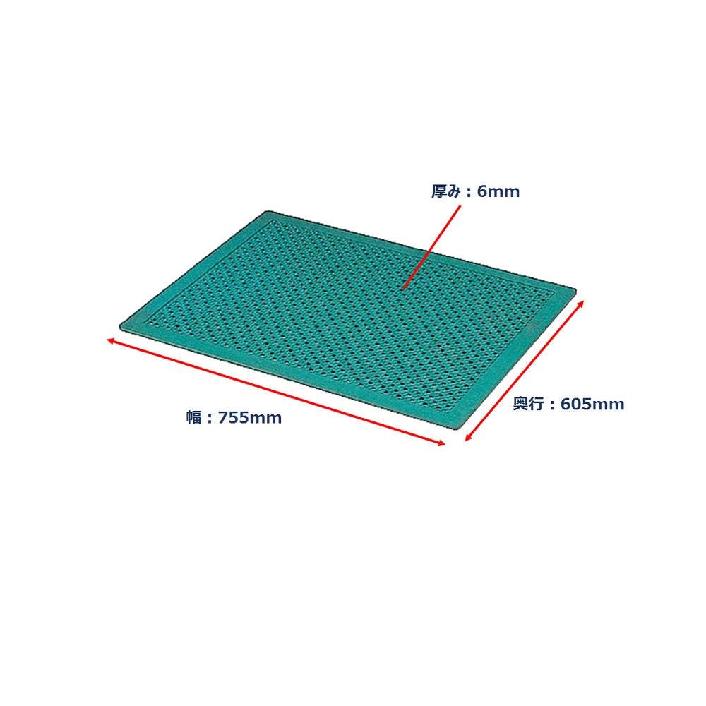 ●おフロのバスマットやドアの入り口マット等のすべり止めマットに適しています。●材質:スチレン・ブタジエンゴム●裏面:吸盤付き●耐熱温度:約120℃●幅×奥行×厚み(mm):755×605×6●吸着安定式
