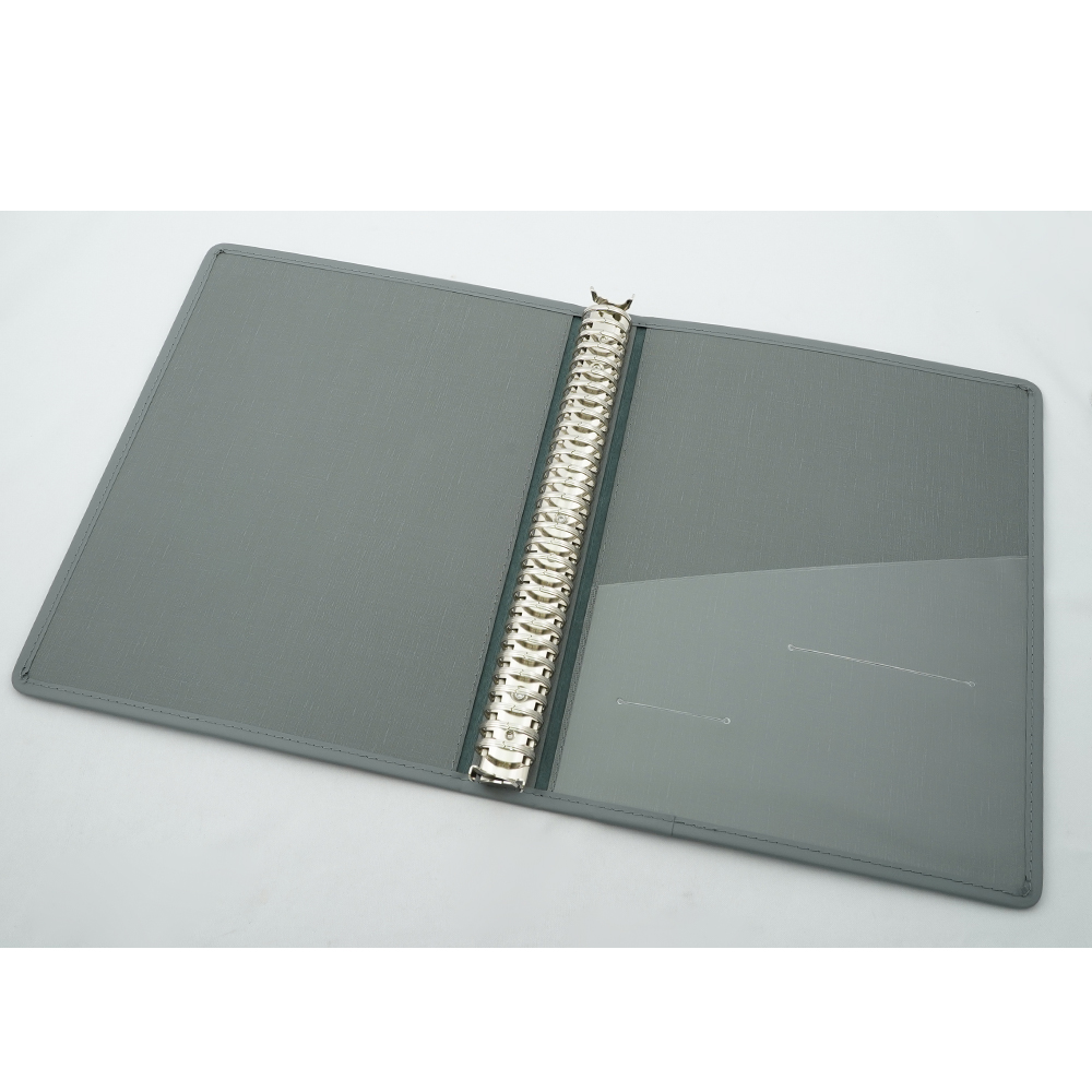 ●耐久性に優れたオーソドックスなタイプ●縁巻き仕様で、表紙のエッジ部分の耐久性に優れています。●材質:抗菌特殊カーフ●A4タイプ●縦×横×背幅(mm):315×250×40●金具:X型・30穴●カラー:グレー●スタンダードタイプ●※B5サイズ背幅30mm、40mmタイプ、A4サイズ背幅50mmタイプもございます。