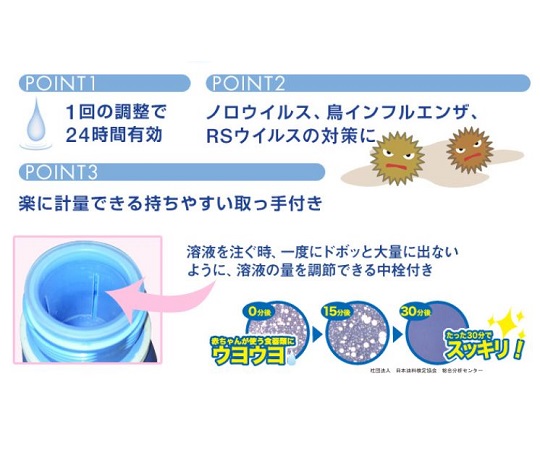 ●濃度:1w/v%●容量:1100mL●主成分:食品添加物・次亜塩素酸ナトリウム製剤