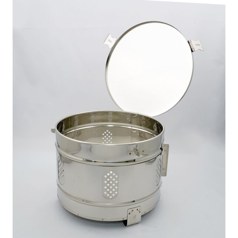 ●材質:ステンレス(SUS304)●フタ・底・側面開閉式●径×高さ(外寸法・内寸法)mm:φ260×190・φ240×165●型番:24