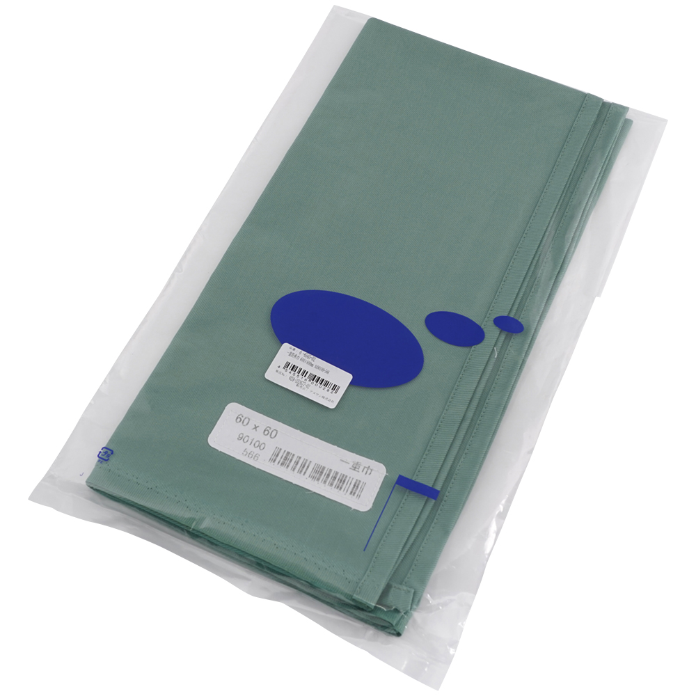 ●裏面にサイズと種類を印字したラベルが付いています。●素材:綿100%●オートクレーブ可●縦×横(mm):600×600●型番:Ad90100-566●色:グリーン●ホワイトラベル