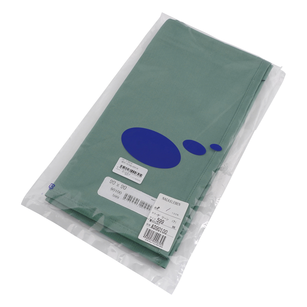 ●裏面にサイズと種類を印字したラベルが付いています。●素材:綿100%●オートクレーブ可●縦×横(mm):900×900●型番:Ad90100-599●色:グリーン●ホワイトラベル