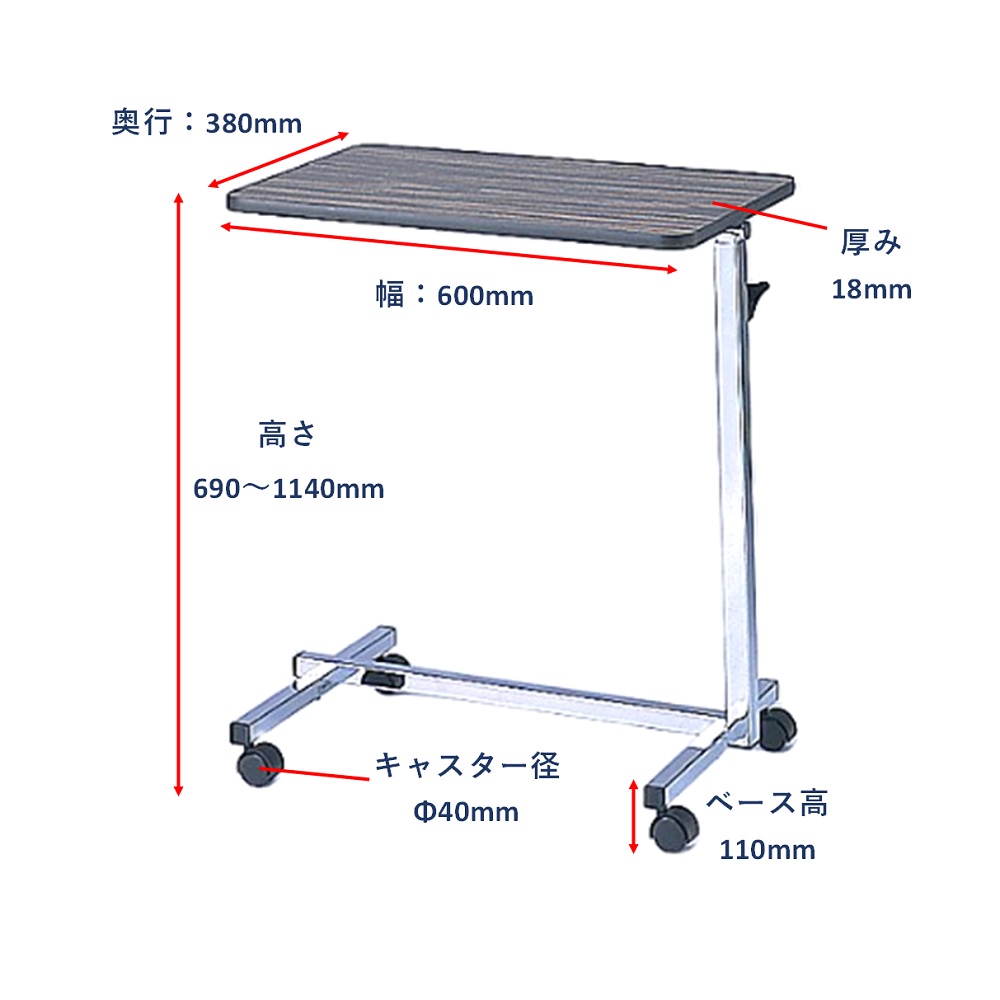 オーバーテーブル(昇降ネジ止め式) 600mm HP1030