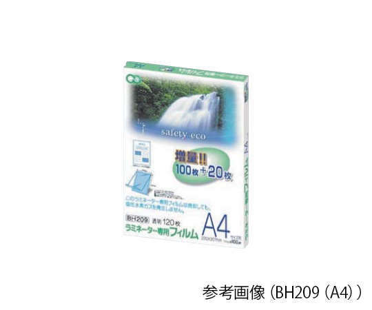 ●焼却しても、塩化水素ガスが発生しません。●厚み:100μm●入数:1箱(120枚入)●フィルムサイズ(mm):220×307●型番:BH209(A4)
