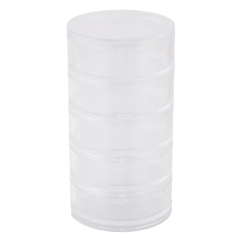 ●5段積みのため、朝・昼・夕・寝る前等、与薬ケースとしてお使いいただけます。●カラー:クリア●材質:本体・フタ/スチロール●内寸法:φ63×22mm(1段)●外寸法(mm):φ70×133(5段)