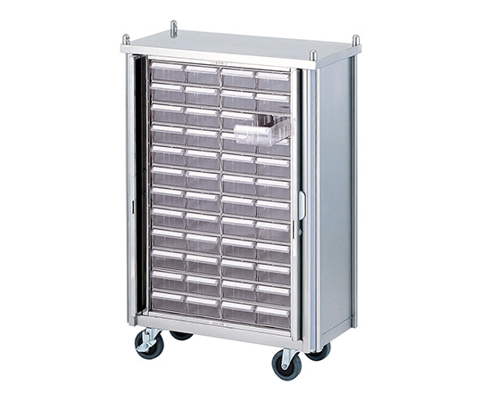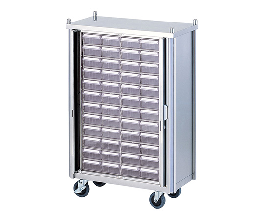 ●鍵付き扉収納タイプはセキュリティー対策に適しています。●引出しは仕切板で分割することができますので、朝・昼・夕・寝る前など服用時間帯に区分けできます。●天板上にハンドルがあるので操作しやすいです。●材質:本体/ステンレス(TFE443CT)、引出し/PS(ポリスチレン)●キャスター:φ100mm(対角ストッパー付き)●引出し有効内寸法:110×207×57mm●引出し仕切板セット可能数:3枚●48人用/鍵付扉タイプ●幅×奥行×高さ(mm):714×360×1060●重量(kg):57●※仕切板は別売です。●型番:HYC-48T