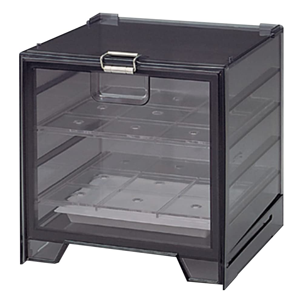 ●上に積み重ねる事ができます。●積み重ね可能!●材質:本体・フタ/AS(アクリロニトリルスチレン)樹脂、留金/SUS303、棚/PS(ポリスチレン)●棚段数:4段●棚間隔:43mm●棚板耐荷重:約5kg/段●総耐荷重:約15kg●重量(棚板含む):約1.8kg●外寸法:250×250×250mm●内寸法:215×220×200mm●付属品:棚板×2枚、シリカゲル皿×1枚