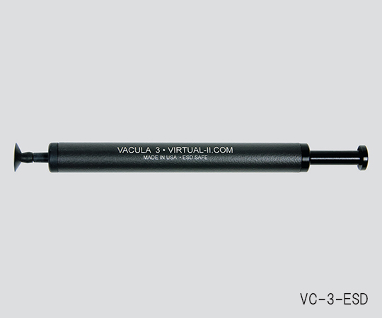 ●電源やポンプは不要で、最大約500gのものまで吸着できます。●本体・先端パッドには全て導電性材料を使用しています。●型番:VC-3-ESD●仕様:本体●サイズ(mm):φ13×165●材質:本体/アルミニウム・導電性ABS樹脂、先端パッド/導電性シリコン●可搬荷重(目安):先端パッドφ12.70mm/400g、φ15.88・φ19.05mm/500g●表面抵抗値:10^4~10^6Ω●本体重量:30g●本体付属品:先端パッド(φ12.70mm・φ15.88mm・φ19.05mm×各1個)●※φ6.35mm以下のパッドは取付けできません。