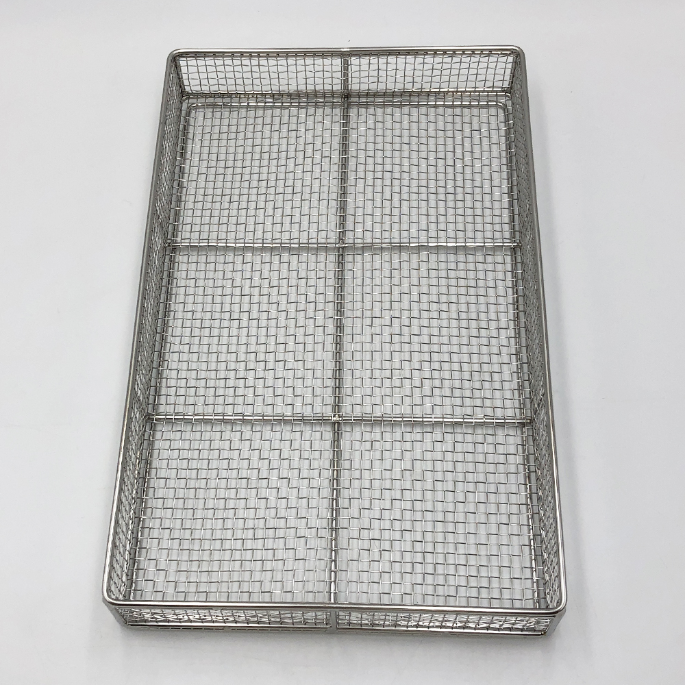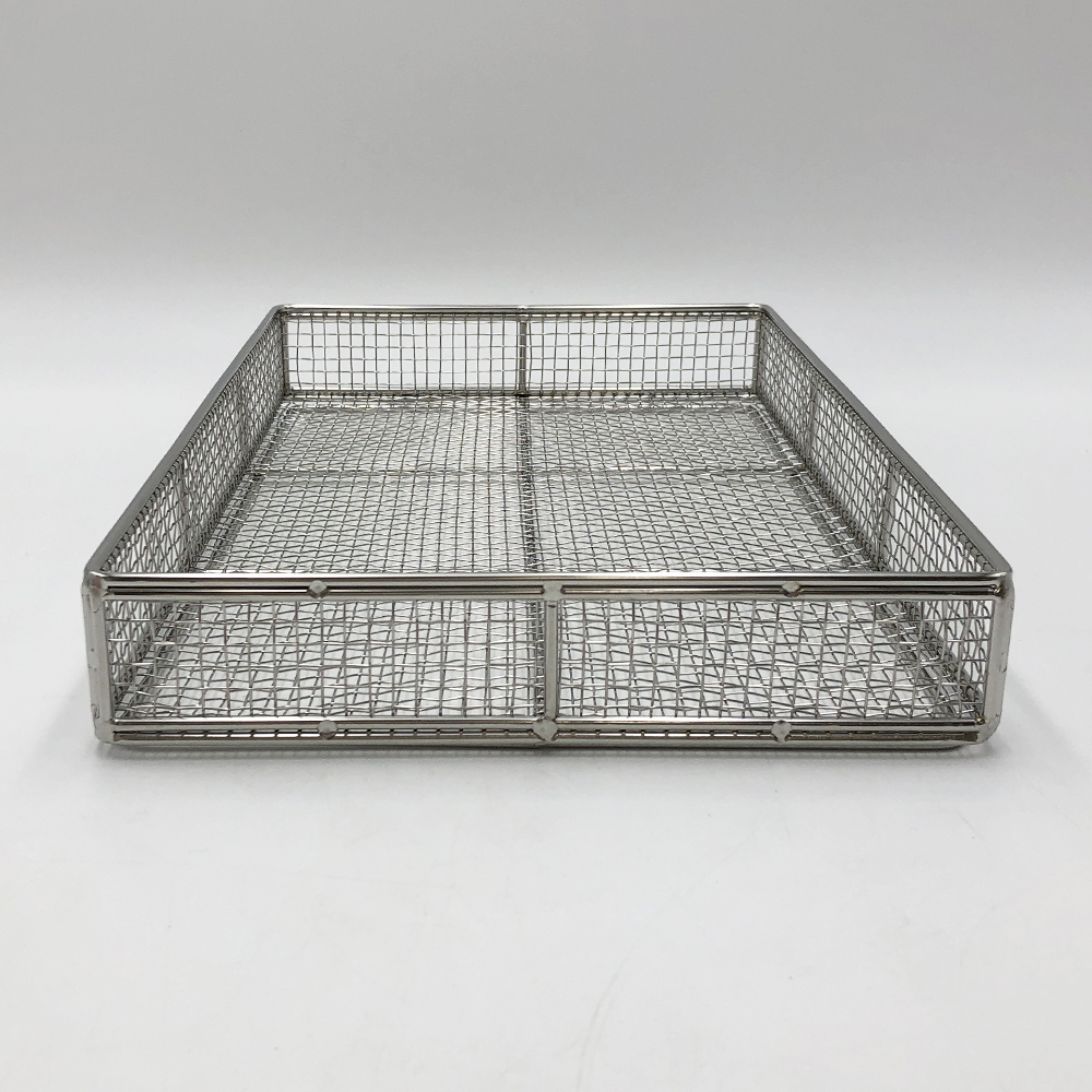 ●材質:ステンレス(SUS304)・電解研磨仕上げ●網目:5.5mm(4メッシュ)●積み重ね可●型番:中浅型●サイズ(mm):250×400×50