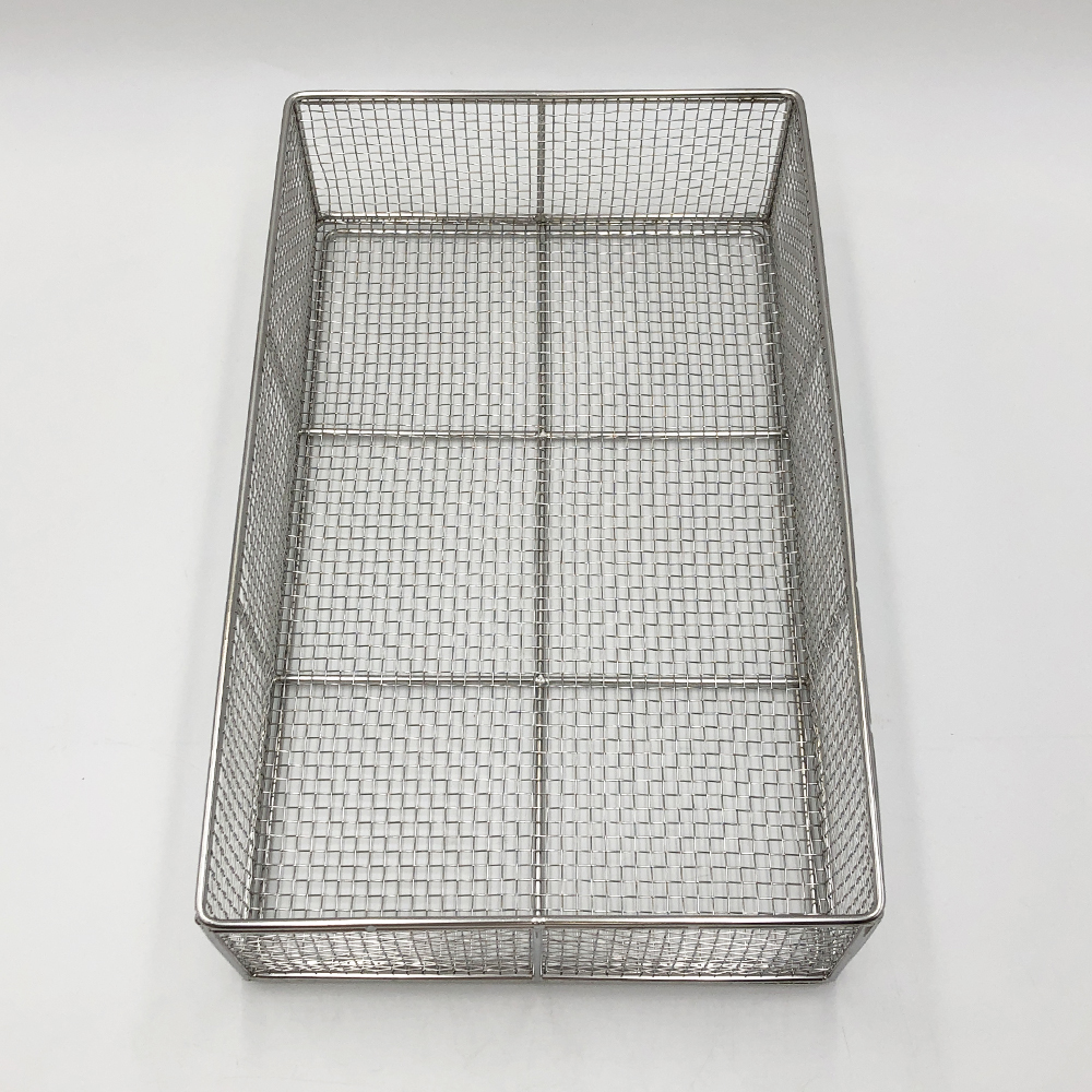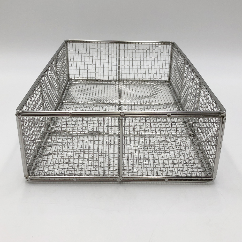 ●材質:ステンレス(SUS304)・電解研磨仕上げ●網目:5.5mm(4メッシュ)●積み重ね可●型番:中深型●サイズ(mm):250×400×100