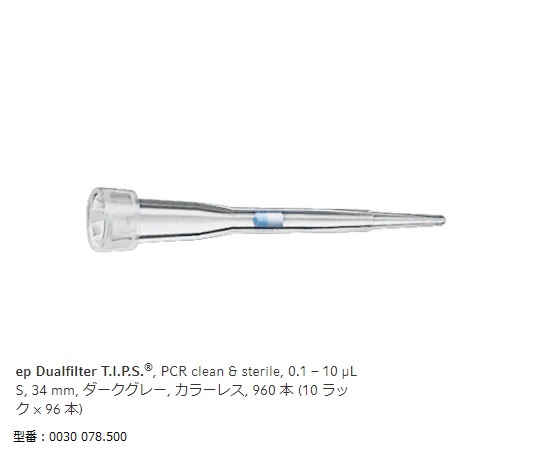 フィルターチップ(ep デュアルフィルター) 0.1~10uL S 96本/ラック×10ラック 0030 078.500