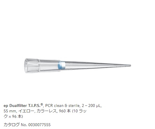 フィルターチップ(ep デュアルフィルター) 2.0~200uL 96本/ラック×10ラック 0030 078.551