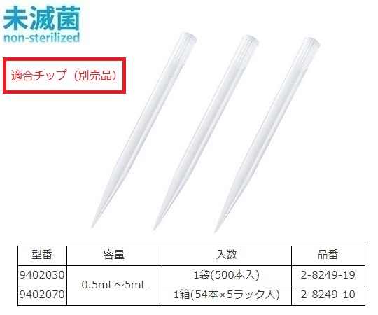 ●容量調節モジュールが独立しており、耐久性、容量の安定性に優れています。●超軽量設計で快適なピペッティング操作が可能です。●容量表示が見やすい大きなディスプレイです。●チップコーンパーツ部分はオートクレーブ可能です。●適合チップ:フィンチップ(~5mL)●容量:0.5~5mL●最小可変容量:0.01mL●精度(最小容量):±2.0%●再現性(最小容量):0.8%●JANコード:4560111736541