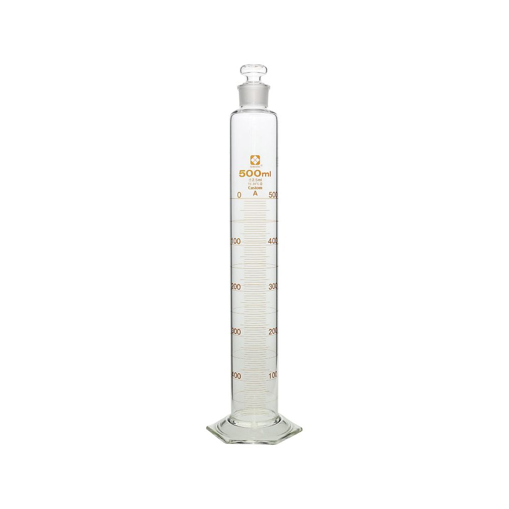 ●液体の体積を測定するための目盛の付いた細長い円筒容器です。●目盛は受入体積(入っている体積)を表し、受用(入用)を意味するTCを表示しています。(TC:To Contain の略)目盛は20℃の水を測定したときの体積を表します。●JIS規格(R3505)クラスAの「体積の許容誤差」に準拠しています。●材質:硼珪酸ガラス-1●JIS R 3505 規格品 クラスA●容量:500mL●一目盛:5mL●外径:φ55mm●全高:390mm●体積許容誤差:±2.5mL●バンパー付き●※校正証明書発行可●コード番号:026580-500
