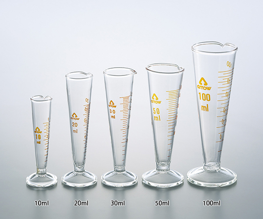 ●材質:硼珪酸ガラス●線膨張係数:35×10^-7/℃●容量:10mL●一目盛:0.5mL●外径:φ23±3mm●全高:100±5mm●体積許容誤差:±0.3mL●円錐形・ハイグラス