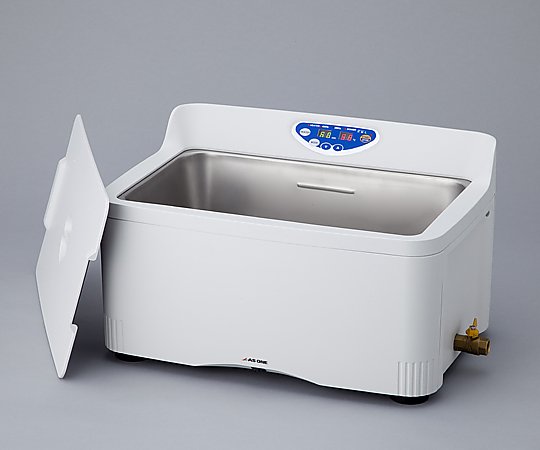 ●Point① 操作パネルは操作しやすい上部パネル方式です。また視認性に優れたデジタル表示で、見やすくなっています。●Point② ヒーターは洗浄とは別に作動し、設定された温度で停止します。●Point③ ASU・ASU-Dシリーズの筐体は、耐薬品性に優れたポリプロピレン製です。●洗浄物に合わせて3段階のパワー調整が可能です(ASU-2・2M・3・3M除く)。また洗浄物が多すぎる場合、自動停止します。●タイマー機能は減算式デジタル表示で、残り時間を確認できます。●プログラム機能を装備していますので、発振パワーHigh/Middle/Low交互運転や間欠運転が可能です(ASU-2・2M・3・3M除く)。●メモリー機能により、一度設定した温度・時間・プログラム内容は、電源をOFFにしても記憶されています。●外寸法(mm):586×397×340●槽内寸法(mm):506×303×150●槽容量:約20.0L●材質:本体/PP(ポリプロピレン)、槽/ステンレス(SUS304)●発振回路:他励発振方式PLL自動追尾●発振子:BLT(ボルト締めランジュバン)●出力:360W●発振周波数:23/43kHz●ヒーター容量:200W●電源/電源コード:AC100V 50/60Hz/2M 3Pプラグ●周波数切換機能:23/43kHz切替●発振パワー切換機能:High/MiddLe/Low3段●プログラム機能:発振パワー・運転時間・停止時間の任意組み合わせ/最大3プログラム●付加機能:ヒーター機能(設定範囲:常温~60℃/1℃単位)、タイマー機能(設定範囲:1~60分/1分単位)●安全機能:過電流防止・ヒーター過熱防止・過負荷防止●排水:手動排水バルブ式 口径Rc1/2●付属品:ステンレススノコ(SUS304)×1個・フタ(ABS樹脂)×1個・ニップル×1個(適合ホース内径φ13mm)●重量:約16kg●二周波・ASU-Dシリーズ●※型式指定番号:第EU-11019号●※サイズは排水バルブを除いた寸法です。