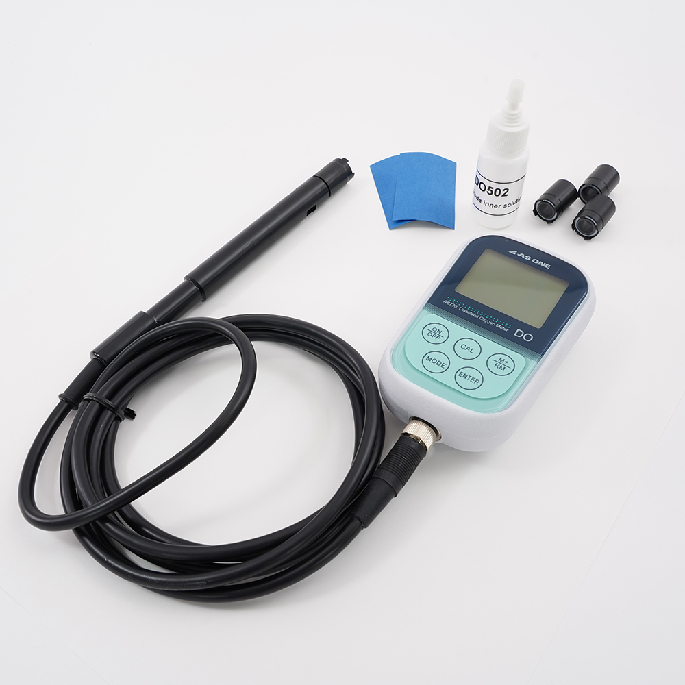●防水、コンパクト、高精度!●見やすい大きなLCD画面で、ブルーのバックライトが点灯します。●オートパワーオフ機能(10分/20分)、バックライト表示時間設定(1分/3分/6分)付きです。●便利なキャリングケース入です。●測定範囲:溶存酸素/0~20.00mg/L(ppm)、 飽和酸素濃度/0~200.0%、 温度/0~45℃●精度:±0.30mg/L●電源:単3電池(1.5V)×2本(テスト用付属)●サイズ:本体/65×120×31mm、センサー/外径:φ15mm、センサー長さ:180mm、ケーブル長:2000mm、●重量:180g●防水:IP57●付属品:専用電極DO-500×1本、メンブレンキャップDO-503×3個、 電極内部液(30mL)×1本、カソード研磨紙×2枚●測定項目:溶存酸素・飽和酸素濃度・温度●型番:AS720