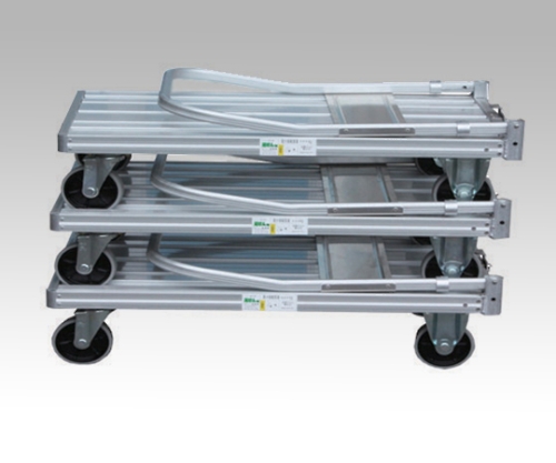 ●軽量で錆びにくい素材です。●手すりを折りたたむと積み重ねが可能です。●サイズ(mm):590×900×856.5●重量(kg):13.2●運ぱん君●材質:アルミニウム(アルマイト表面処理)●折りたたみ時高さ:300mm●キャスター:φ125mmウレタン製(ストッパー無し)●耐荷重:300kg