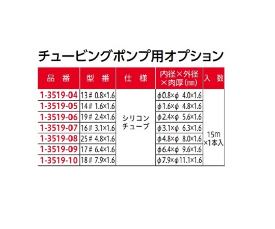 ●中流量~大流量のチューブポンプです。●チューブはワンタッチで交換可能です。●呼び水ボタン付きで、素早く開始できます。●ポンプヘッドは別売の2515(1-3519-16)も取り付け可能です。●ポンプヘッド仕様:シングルレバーダウン式●流量(mL/min)※:960●回転数:1~600rpm●精度:1rpm●表示:LED3桁●正転・逆転切り替え機能付き●ポンプヘッド材質:外装/ポリエーテルスルホン、ローラー/SUS304●電源:AC100V 50/60Hz3Pプラグ付き●消費電力:55W以下●サイズ:185×285×180mm●重量(ポンプヘッド含む):4.2kg●セット内容:本体、ポンプヘッド(1515)、25#シリコンチューブ(2m)●※25#シリコンチューブ使用・常温・市水100rpm時の値です。