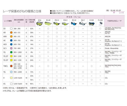 ●★EXCIMER、Nd-YAG(FHG)、Nd-YAG(THG)対応可能です。●★矯正眼鏡の上から装着可能なオーバーグラスタイプです。●★ツルの角度調整・長さ調整が可能なので、快適なフィット感を得られます。●★ひさしにソフトクッションを使用しているので、顔当たりが良く、レーザ光の侵入を防ぎます。●材質:フレーム/ナイロン、レンズ/PC(ポリカーボネート)●めがね併用可●フロント枠角度・つる長さ調節可●重量:48g●タイプ:1眼式●適応波長:180~390nm●光学濃度(OD):7●可視光線透過率:92%●フレームタイプ:RS-80●使用可能なレーザの種類:EXCIMER・Nd-YAG(FHG)・Nd-YAG(THG)