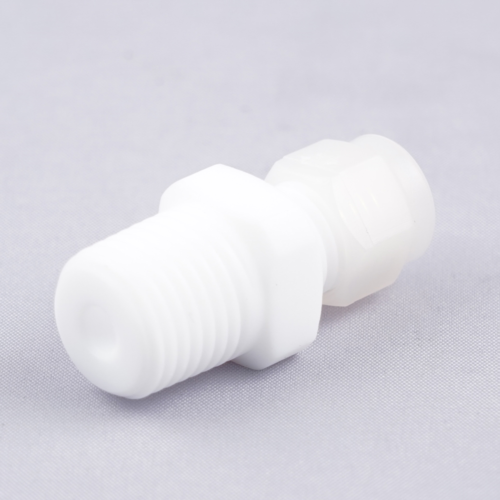 ●型番:30-6MC4-C●材質:ボディ/PTFE(フッ素樹脂)、ナット/ECTFE(フッ素樹脂)●最高使用温度:100℃●テーパ収縮シール方式●適合チューブ材質:PFA・PTFE●チューブ径:1/4インチ●ネジサイズ:R1/4