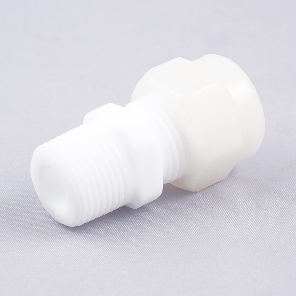●型番:30-10MC6-C●材質:ボディ/PTFE(フッ素樹脂)、ナット/ECTFE(フッ素樹脂)●最高使用温度:100℃●テーパ収縮シール方式●適合チューブ材質:PFA・PTFE●チューブ径:3/8インチ●ネジサイズ:R3/8