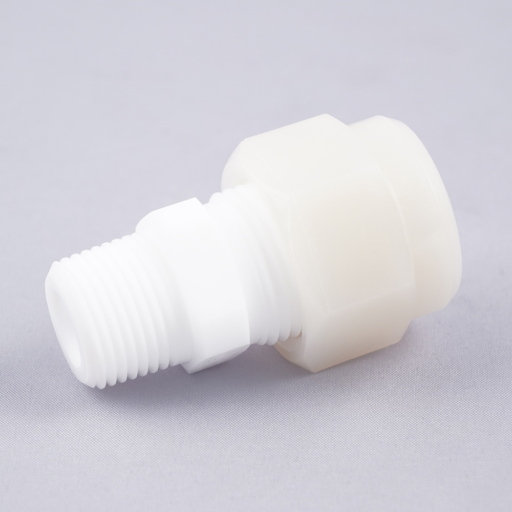 ●型番:30-12.7MC6-C●材質:ボディ/PTFE(フッ素樹脂)、ナット/ECTFE(フッ素樹脂)●最高使用温度:100℃●テーパ収縮シール方式●適合チューブ材質:PFA・PTFE●チューブ径:1/2インチ●ネジサイズ:R3/8