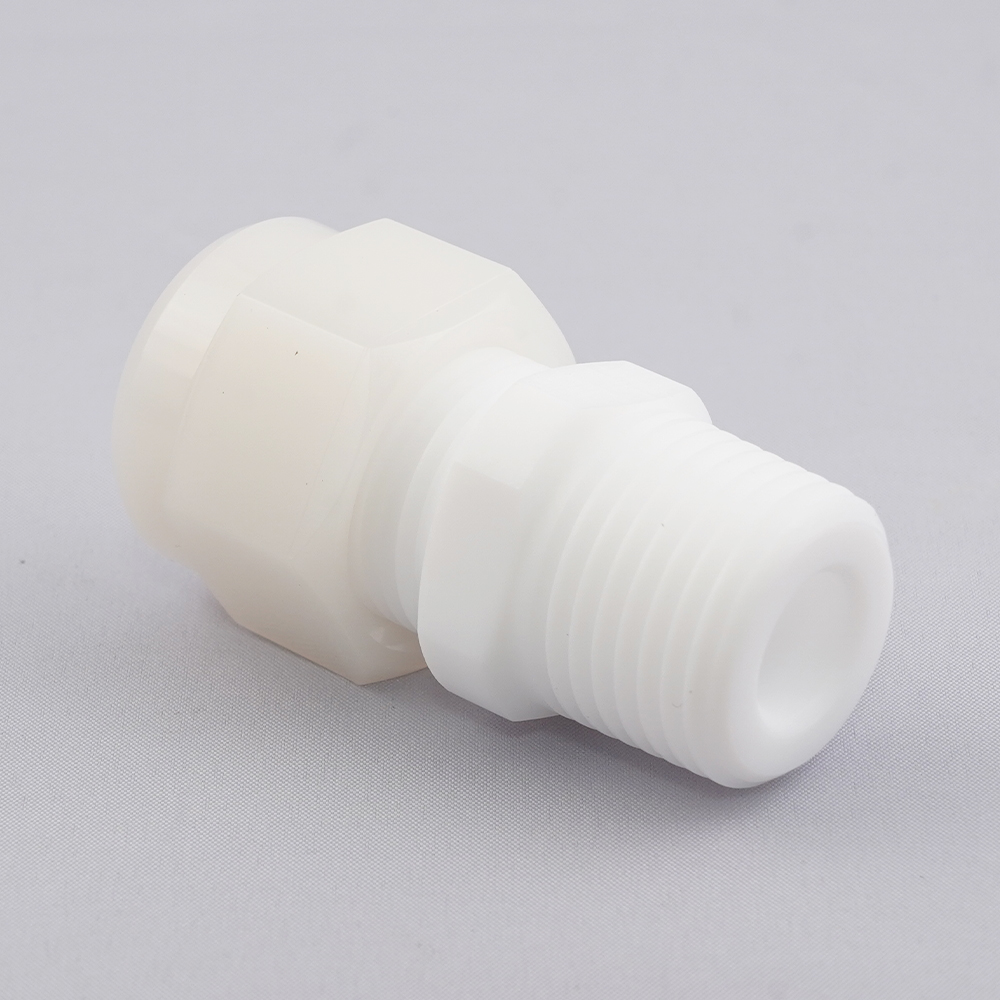 ●型番:30-12.7MC8-C●材質:ボディ/PTFE(フッ素樹脂)、ナット/ECTFE(フッ素樹脂)●最高使用温度:100℃●テーパ収縮シール方式●適合チューブ材質:PFA・PTFE●チューブ径:1/2インチ●ネジサイズ:R1/2