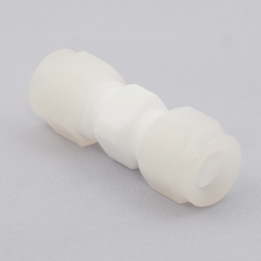 ●ストレート●材質:ボディ/PTFE(フッ素樹脂)、ナット/ECTFE(フッ素樹脂)●最高使用温度:100℃●テーパ収縮シール方式●適合チューブ材質:PFA・PTFE●チューブ径:1/4インチ