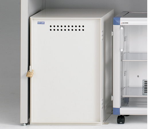 ●耐薬性に優れたPVC(塩化ビニル樹脂)製の薬品庫です。●小型で実験台下にすっきり収納できますので、常時使う薬品の収納に便利です。●型番:UT-YK01●サイズ(mm):400×400×600●重量:9.6kg●材質:PVC(塩化ビニル樹脂)●※扉のヒンジ部や鍵等一部に金属部品を使用しています。●付属品:棚板×1枚(385×350mm)、南京錠×1個、固定金具×4個●UT-Lab.