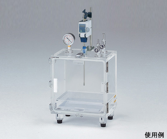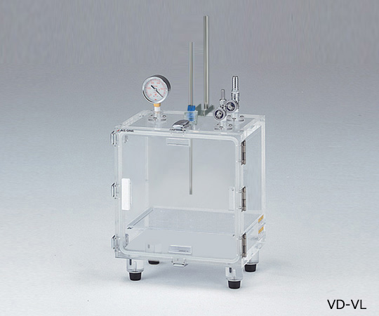 ●真空環境で撹拌することにより、試料中に含まれる気泡を容易に脱泡する事が可能です。 ●本体は透明アクリル製ですので、実験中の内部観察も容易に行えます。●外寸法(突起部除く):300×222×360mm●内寸法:260×180×260mm●材質:本体/透明PMMA(アクリル)、バルブ・真空計取り付け部/PC(ポリカーボネート)●容量:12L●板厚:20mm●棚段数:2段●減圧許容度:1Torr(約133Pa)●真空バルブ:小/外径φ8mmホースニップル、大/外径φ14mmホースニップル●重量:11.4kg●棚板耐荷重:2kg/枚●棚板×2枚●付属品:φ8mm撹拌棒用バキュームシール・撹拌機取り付け用支柱(φ16mm)・シリカゲル皿×1枚●推奨真空ポンプ:1-4148-11 高真空ダイアフラム型ドライテフロン真空ポンプ DTC-22(耐蝕型)、1-671-06 ドライ真空ポンプ DA-20D、1-672-07 油回転真空ポンプ G-50SA●※クランプ・撹拌機は付属していません。※トルネード撹拌機専用です。