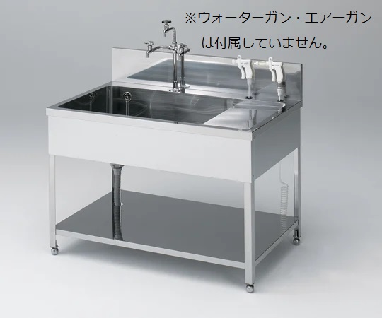 ●洗浄作業に便利なウォーターガン・エアーガンを組み込み可能な便利な流し台です。●型番:KWAG-1200●本体材質:ステンレス(SUS430)●槽深さ:240mm●水切り幅:300mm●化学水栓T42C付き●排水ホース:φ36mm●レベル調整用アジャストボール付き●サイズ:1200×750×800mm(水槽まで)●重量:30kg●ウォーターガン・エアーガン用●※ウォーターガン・エアーガンは付属していません。●※エアーガンは6-6602-01、ウォーターガンは9-4018-02をご参照ください。