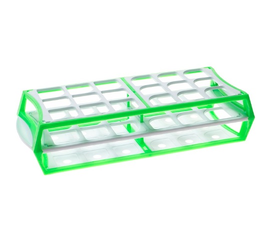 ●直径25~30mmの遠沈管・試験管等、様々なチューブを収納できます。●コンパクトで軽量で、積み重ね可能です。●インキュベーター、冷蔵庫、冷凍庫など研究室の様々な場所で使用できます。●耐久性の高いアセタール製で、コーティングがないためウォーターバス内で欠け、剥がれ、錆が生じる心配がなく、水中でも倒れることなく安定して沈みます。●ベースには排水孔があります。●便利なハンドルがラック側面にあります。●適合チューブ径:φ25~30mm●50mL遠沈管用●立て数(本):18●色:グリーン●★入数:1箱(10個入)●材質:アセタール●使用温度範囲:-80~+30℃●サイズ:293×115×65mm●オートクレーブ不可