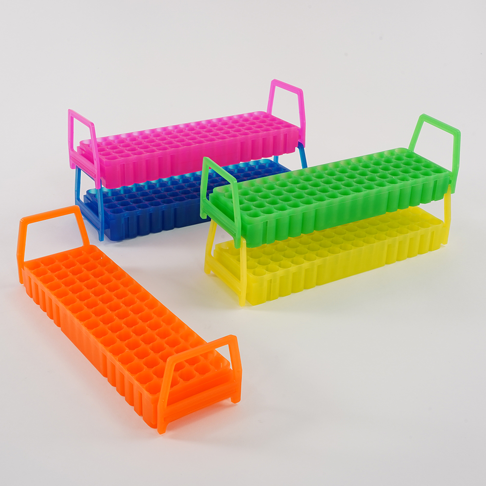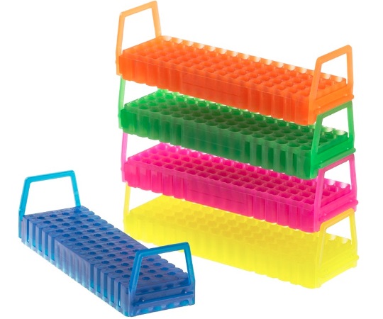 ●水平連結・積み重ねが可能なチューブラックです。●両面タイプで、片面に直径10~12mmまでのチューブを最大80本、裏返してもう片面にφ6.9mmまでのチューブを60本収納できます。●-196℃まで耐えられ、オートクレーブも可能です。●ハンドルは取り外し可能です。●ハンドルの穴にラックのタブを斜めに差し込むことで容易にチューブを出し入れできるようラックに角度をつけられます。●バーコードやラベルの貼付や書き込みができるよう、両面に艶消し加工が施されています。●フェルトペンで簡単に書き込めます。●型番:S500-80AS●ラック●カラー:5色パック(青・緑・ピンク・黄・オレンジ)●材質:PP(ポリプロピレン)●使用温度範囲:-196~+121℃●オートクレーブ可(121℃、最大30分)●サイズ:223×67×27mm●収納本数(両面使用時):1.5・2.0mLマイクロチューブ・クライオバイアル/80本、0.2・0.5mLPCRチューブ/60本●ウェルサイズ(直径×深さ):φ12×26mm、φ6.9×11mm●入数:1ケース(5色×各2個入)