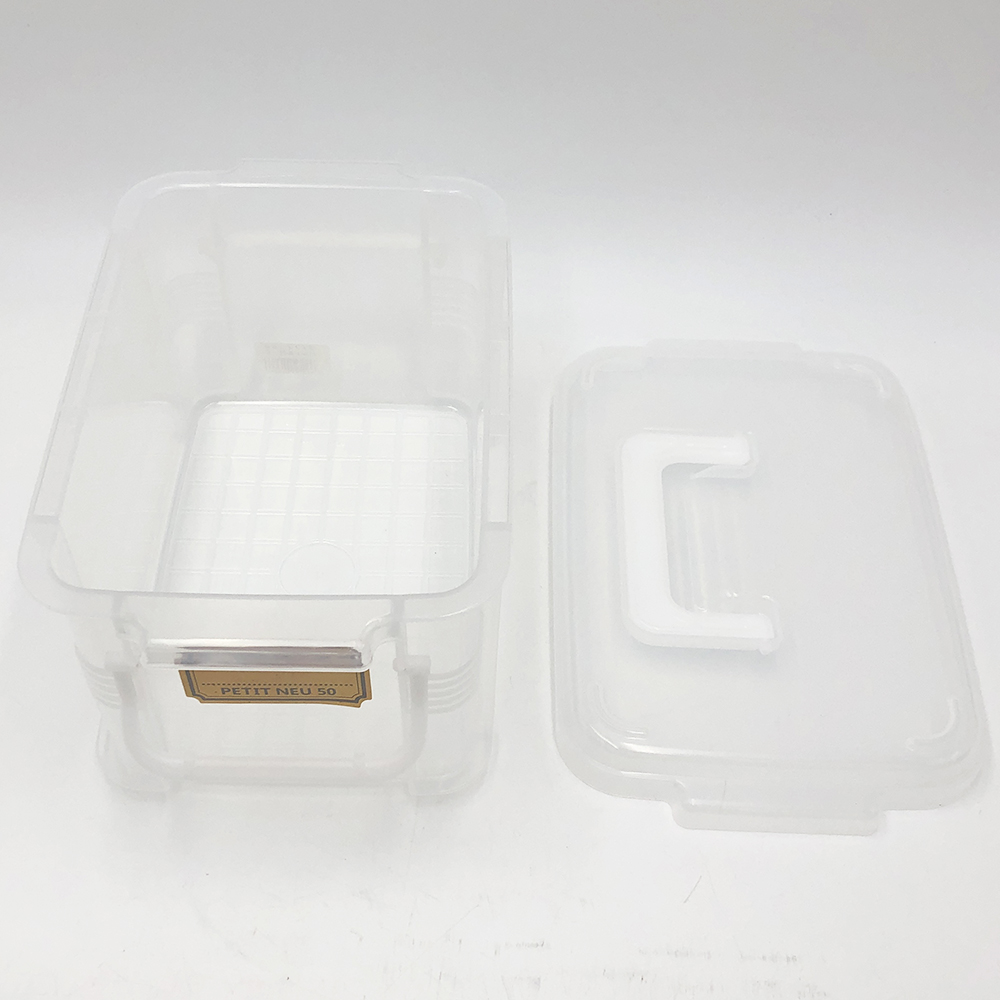 ●ハンドル付きで持ち運びが容易です。●半透明ですので内容物が外から確認できます。●ハンドル付●外寸法(mm):257×170×144●内寸法(mm):205×135×125●容量:3.4L●材質:PP(ポリプロピレン)●重量:330g●耐荷重約6kg●フタ固定バックル付き