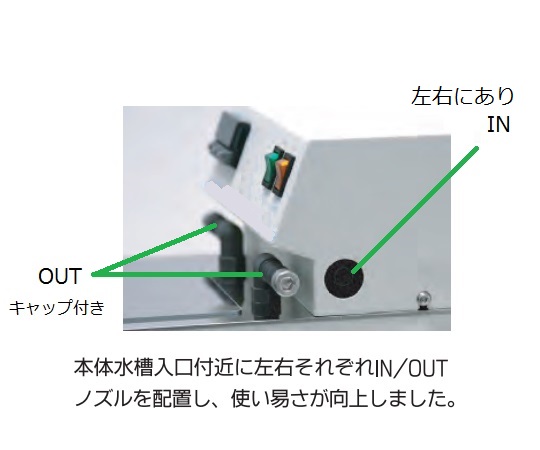 ●独自のPID+DACオートチューニング制御で常に安定した高精度な温度コントロールができます。●温度制御方式:PID+DAC(微分アプローチ制御)オートチューニング方式●最小温度設定:0.1℃ステップ●ヒーター容量:600W(SUSスパイラルシーズヒーター)●冷凍機:密閉型ロータリーコンプレッサー(150W)(冷媒R134a)●冷却能力:50Hz/255.8W(220kcal/h)(at+20℃)、 60Hz/290.7W(250kcal/h)(at+20℃)●ポンプ能力:最大流量/3L/min・揚程約1.2m●循環ノズル口径:外径φ12mm●循環容量:3L/min・揚程1.5m●サイズ:172×385(ドレイン含む/430)×418mm●L型ホース口:外径/φ12mm、 内径/φ7mm●安全装置:過電流ブレーカー・過熱防止センサー・水位センサー・フロート式空炊き防止●電源:AC100V 50/60Hz 8A●電源コード長:2m(3Pプラグ・変換アダプター付き)●重量:約18kg●温度範囲(℃):-10~+60●温度精度(℃):±0.1~0.5●※呼び水が必要です。●型番:CB-Jr.A●バリデーションサービス(IQ/OQ)対応が可能な商品です。 是非お問合せください。●※バリデーションサービスとは、お客様の現場で、据付時適格性確認(IQ)と稼動性能適格性確認(OQ)を実施し、検査書を提出するサービスです。●IQOQ承ります。お問合せください。