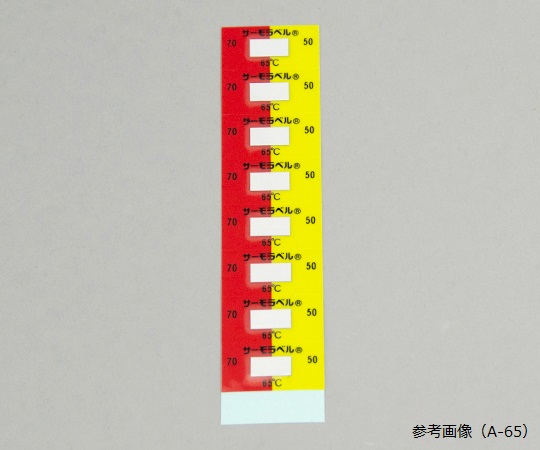 ●可逆性のサーモシートをベースにして、その中心部に不可逆性の示温エレメントを組合せたサーモラベルです。●示温エレメント部で過去の温度履歴を表し、ベース部の変色(左半面は70℃・右半面は50℃で変色)の有無で現時点温度を表示します。●サイズ:ベース部/15×30mm、示温エレメント部/6×12mm●入数:1箱(80枚入)●変色温度:90℃(示温エレメント部)●原色→変色:白→赤(示温エレメント部)●不可逆性/可逆性●変色温度:左半面/70℃、右半面/50℃(ベース部)●原色→変色:左半面/赤→←暗い茶色、右半面/黄→←黄味橙(ベース部)●※温度下降による高温色→低温色への変色は、ヒステリシス現象で表示の温度より約15℃低くなります。