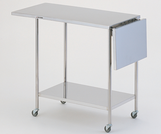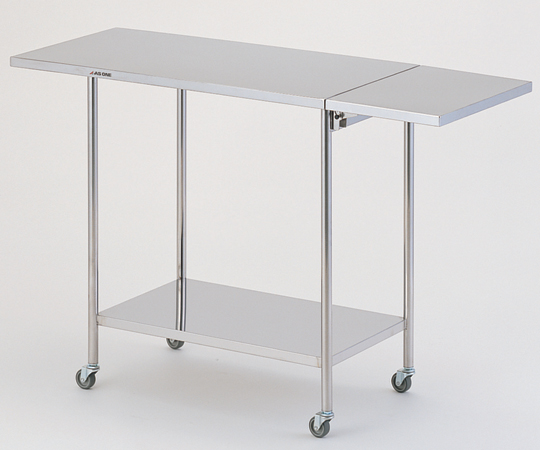 ●天板部に特殊なシートを貼ることにより、金属音を軽減しました。●折りたたみ式のテーブルを装備しています。●作業時の嫌な音をシャットアウト●材質:本体/ステンレス(SUS304と同等の特性を持ち磁性を有するステンレス鋼材です。)、シート/特殊ゴム●キャスター:φ50mm、NBR(ニトリルゴム)+NR(天然ゴム)製、対角ストッパー付き●耐荷重:天板・棚各約30kg、折りたたみ板/10kg●棚間隔:590mm●サイズ(mm):1200(テーブル折りたたみ時900)×450×790