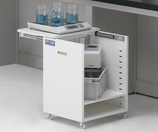 ●スチールフレームで構成された実験台本体と、収納するものにあわせて自由に選択できるユニットで構成されています。フレキシビリティに優れ、実験・研究内容の変化にも柔軟に対応できます。●前後共に取手が付いていますので、左右どちらに置いても使用できます。●スライド式天板になっています。●型番:IUT-UT●サイズ(mm):410×470×620●重量:15kg●材質:本体/スチール、天板/木製合板●棚板取り付けピッチ:40mm●キャスター:ナイロン製、φ38mm●天板耐荷重:4kg(均等荷重)●天板スライド幅:260mm●付属品:棚板×1枚●UT-Lab.