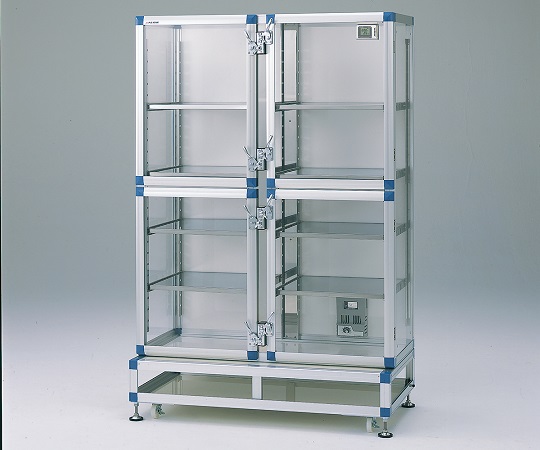●ドライユニットは、固体高分子電解質膜を利用して庫内空気中の湿気を直接電気分解し連続的に除去しますので安定した除湿が可能です。●アジャスター付きのため、安定した設置が可能です。●重量物の保管に適したスライド式耐荷重棚板と庫内を低湿度に保つドライユニットを装備。●オートドライタイプ●除湿方式:固体高分子電解質膜によりH2O電気分解排出●湿度制御範囲:約20%RH~室内湿度(48h後・庫内無負荷時・使用環境による)●湿度コントロール:ダイヤル自動調節式(相対湿度)●除湿素子有効膜面積:70×70mm●重量:約75kg●棚板耐荷重:約35kg/枚●棚板寸法:470×460mm●キャスター:φ65mmナイロン製(ストッパー×2個付き)●本体総耐荷重:約200kg●電源:AC100V 50/60Hz●電源コード長: 3m(2Pプラグ)●平均消費電力:5W●材質:本体/PMMA(アクリル)、枠/アルミサッシ、スライドレール棚/ステンレス(SUS430)●スライド幅:300mm●棚板取り付けピッチ:50mm(棚板間隔:40mm)●外寸法(mm)※1 ※2:1152×520(600)×1765●内寸法(mm)※1:1072×460×1470●付属品:スライドレール棚×8枚(標準×6枚・ショート×2枚)・デジタル温湿度モニター(THA-01M)●※1 突起部を除く●※2 ( )内は土台部を含む●★※木製の梱包(木枠・パレット等)を使用しています。●※特注及び追加工可能です。●※運送費・搬入費・据付費・組立費等が別途必要です。お問い合わせください。