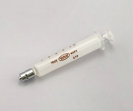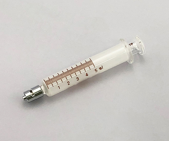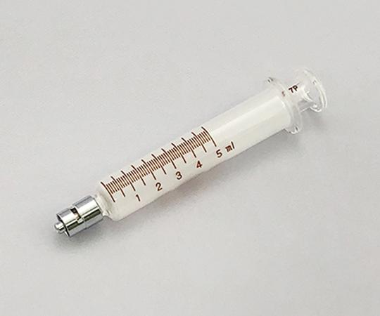 ●容量:5mL(中口)●目盛単位:0.1mL●材質:注射筒/硬質ガラス、ロック金具/真鍮クロムメッキ●ロック先