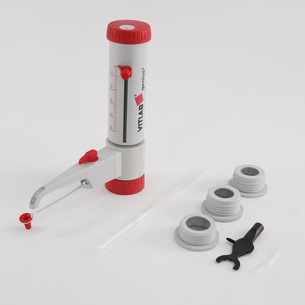 ●バイパス機能を標準装備し、泡抜き時に高価な試薬をボトルに戻します。●滴定方向(ノズルの向き)が360°自由に動きます。●各種の試薬瓶に直接装着できます。●オートクレーブ滅菌が可能です(121℃・2bar・20分)。●型番:1625506●容量(mL):2.5~25.0●最小目盛(mL):0.5●アダプター:GL32・GL38・S40●精度:0.5%●変動係数:≦0.1%●標準取付口規格:GL45●材質:シリンダー/ガラス、排出チューブ・吸引チューブ/テフロン(R)●付属品:アダプター●※標準取付口径は分注器本体の取り付けサイズです。●※ボトルは付属していません。