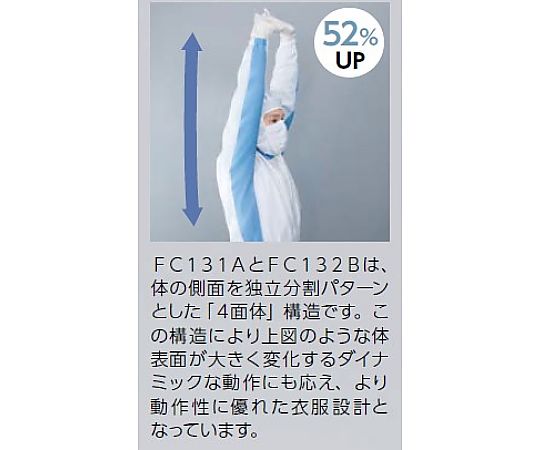 ●クリーンルーム用ウエア●体の側面を独立分割パターンとした4面体構造で、背伸び・前屈のようなダイナミックな動きにも適しています。●【推奨コーディネート】フード:FC438C(品番:1-6366-11、12、61-0094-93)、ブーツ:FS663C(品番:2-2897-01~04、64-8903-03~10)、FS664C(品番:1-1657-01~08、64-8903-11~14)●材質:ポリエステル100%(黒色導電系5mmストライプ入り)●グレード目安:クラス100●表面抵抗値:10^7Ω●導電糸5mmストライプ(黒)●サイズ:3L●適応身長(cm):178~186●総丈(cm):158●バスト(cm):126●ウエスト(cm):86~112●裄丈(cm):90●股下(cm):84●ホワイト×グリーン●衿部面ファスナー止め●センターファスナー●左胸名札ループ付き●左腕ペン差し、腕章用ループ付き●袖口、裾口、ウエストゴム絞り●男性用●※付帯品(フード、手袋、靴)は別売です。