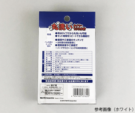 ●防水性能IPX7のため、濡れた手でも安心です。●セット時間を繰り返すリピート機能付きです。●色:ブラック●最大設定時間:99分59秒●最小設定時間:1秒●サイズ:72×66×16mm●重量:約50g(電池含む)●電源:CR2032×1個(テスト用付属)●電池寿命:約1年(1日1回30秒以上鳴らした場合)●音量:70dB以上●アラームの鳴動時間:約30秒●防水:保護等級7級●マグネット・ストラップ穴付き●※ストラップは付属しておりません。●付属品:取扱説明書(保証書付)、お試し用電池(CR2032コイン形リチウム電池×1個)●★動画:タニタ公式YouTubeチャンネルより