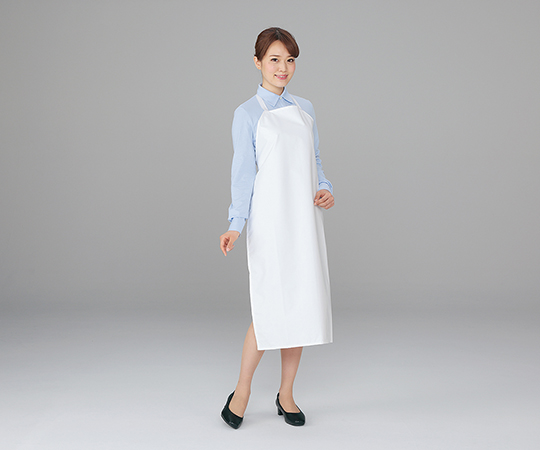 ●薬剤の浸透を防ぎながら、汗等の湿度は放出します。●耐薬性に優れています。●導電糸入りですので、静電防止機能があります。●型番:F-7232-002●材質:ポリエステル(PTFE(フッ素樹脂)ラミネート・導電糸入り)、 ひも/ナイロン●耐水圧:294kPa以上●入数:1枚入●サイズ:M●幅×丈:600×1030mm